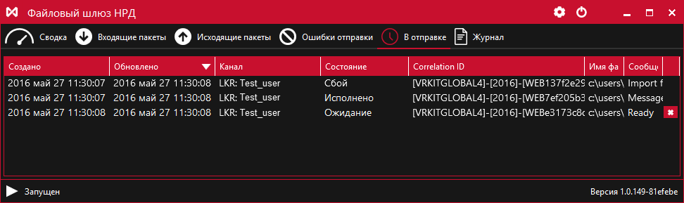 Файловый шлюз НРД – десктопное Windows-приложение, которое используется для автоматического обмена заранее подготовленными сообщениями с НКО АО НРД. Файловый шлюз поддерживает отправку: